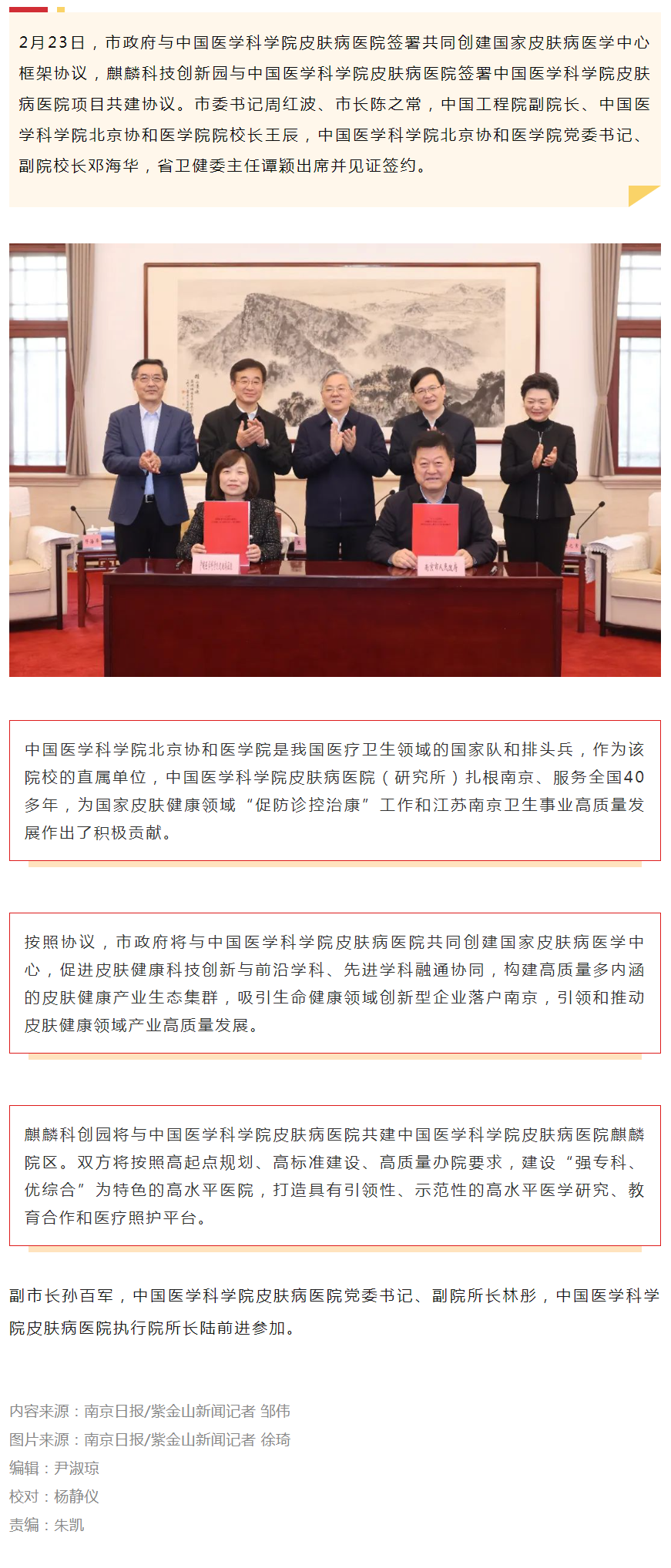 市政府与中国医学科学院皮肤病医院签约共同创建国家皮肤病医学中心