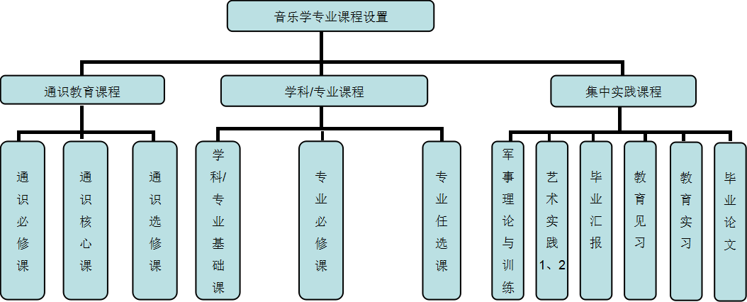 乐理、视唱练耳1、视唱练耳2、视唱练耳3、视唱练耳4、和声1、和声2、中国音乐史1、中国音乐史2、西方音乐史1、西方音乐史2、曲式分析1、曲式分析2、音乐美学、教育学、心理学。