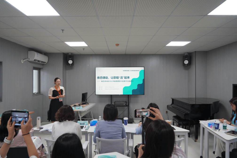 孙人君老师从《体态律动,让歌唱“活”起来——体态律动在中小学歌唱课型中的教学实践研究》这一主题展开讲解,梳理了音乐与身体律动之间的内在联系,并精准提炼出体态律动教学法的核心要义。通过对体态律动在歌唱情感表达与技巧融合中的运用及其价值的深刻剖析,强调了歌唱教学的“活”,是歌唱状态的活跃,音乐表达的灵活,文化理解的活态传承。