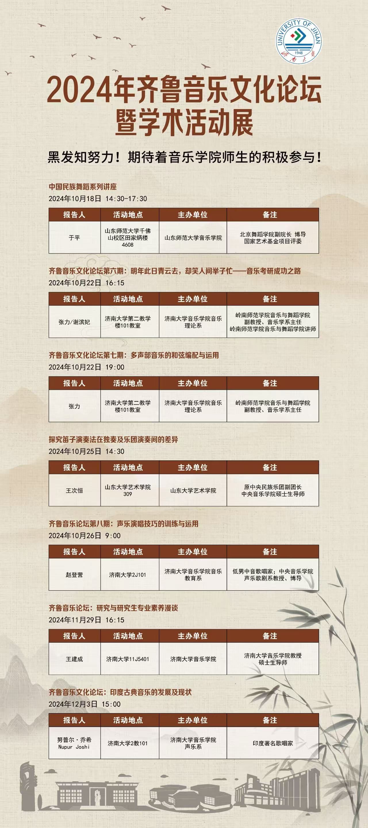 为营造浓厚的学术、科研、教研氛围,提高午夜av 教学、科研水平,提升人才培养质量,进一步加强学科专业建设,增强对外学术交流的积极性,充分调动学生参与学术活动的积极性,午夜av 2024年锐意打造学院学术品牌——齐鲁音乐文化论坛,在各系和兄弟学院的共同努力下,学院已成功举办齐鲁音乐文化论坛六场,秋季继续开讲,计划全年举办二十场。期待对齐鲁音乐文化感兴趣的广大师生积极关注、积极参与!