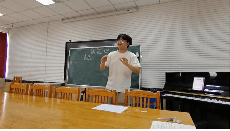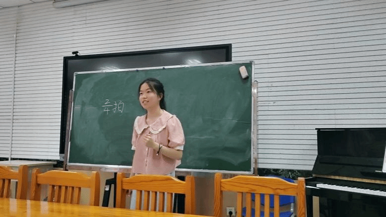 小学组两名选手郭宇淏和吕柯华依次进行《七色光之歌》和《真善美的小世界》微课展示,中学组乔宏烨则围绕《摇篮曲》展开教学内容呈现。展示过程中,同学们将音乐理论知识与课堂教学实践有机结合,通过节奏示范、旋律讲解、互动问答等多种形式,展现出较为扎实的专业功底与教学实践能力。