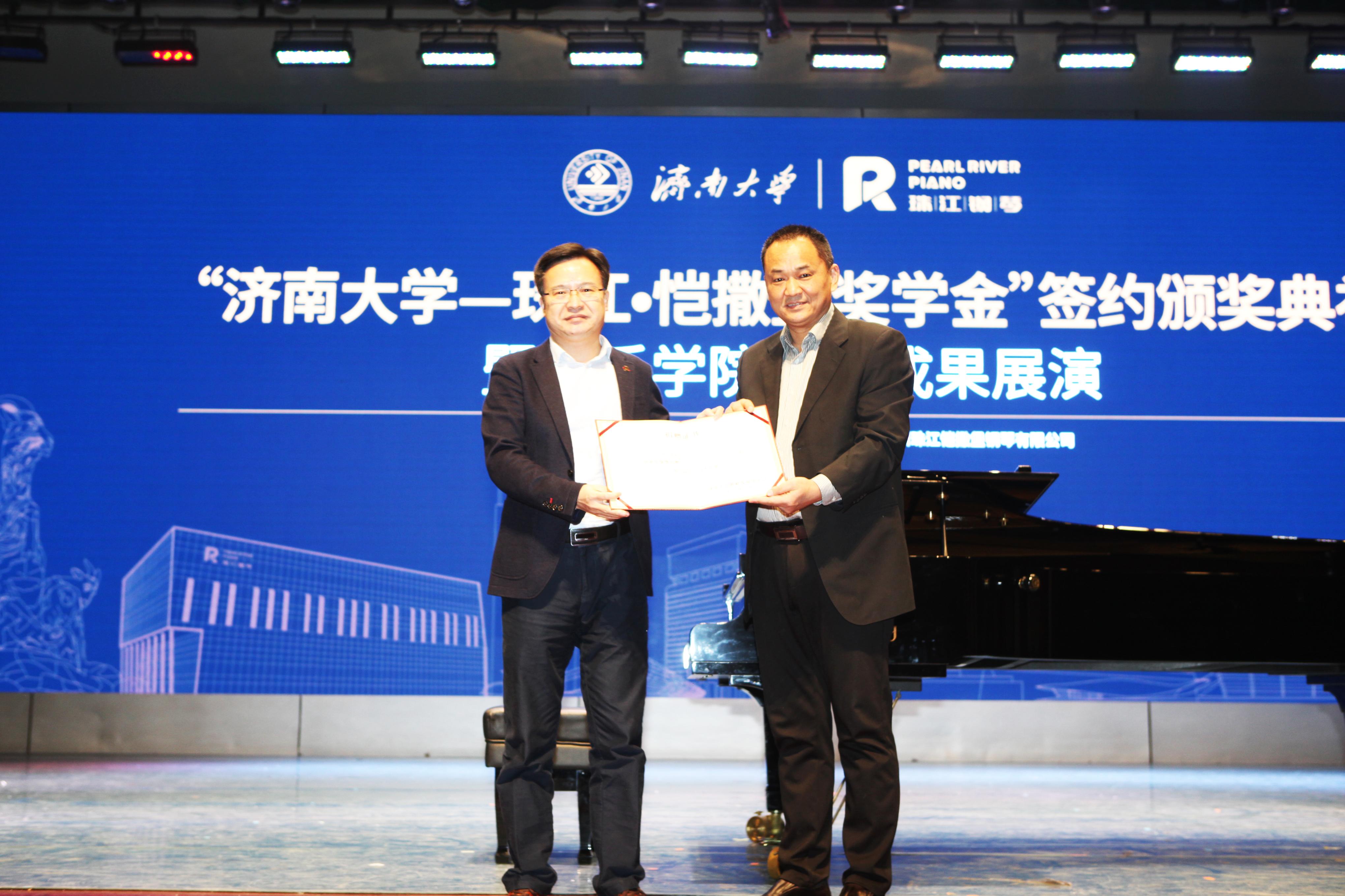 合作发展处副处长兼教育发展基金会办公室副主任李仲涛为广州珠江钢琴集团股份有限公司颁授捐赠证书。午夜av