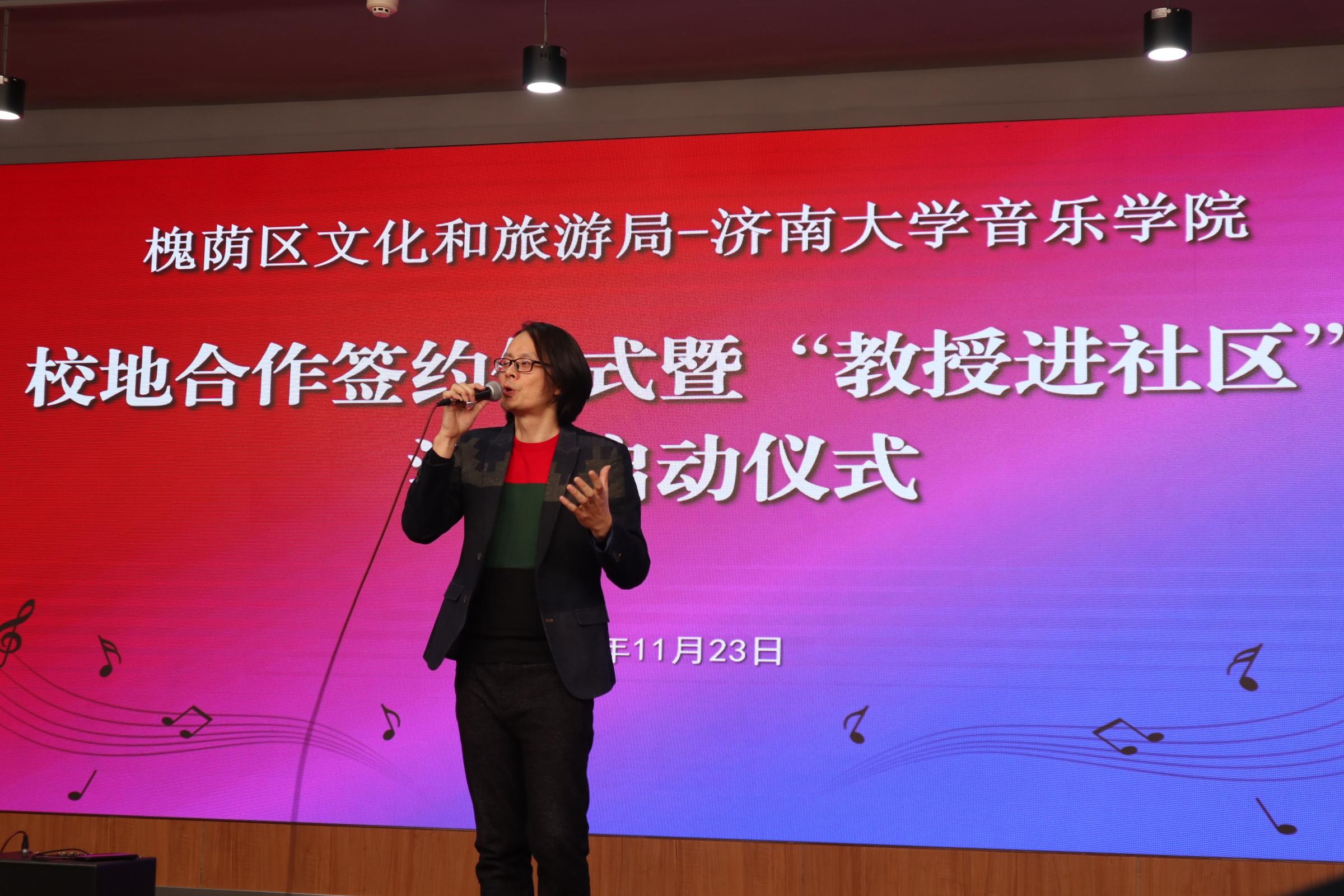 仪式上,济南市槐荫区文化和旅游局局长岳仁强在致辞中对学校表示衷心感谢,他介绍通过校地合作开展“教授进社区”活动旨在加快实现槐荫“文化兴”,由午夜av