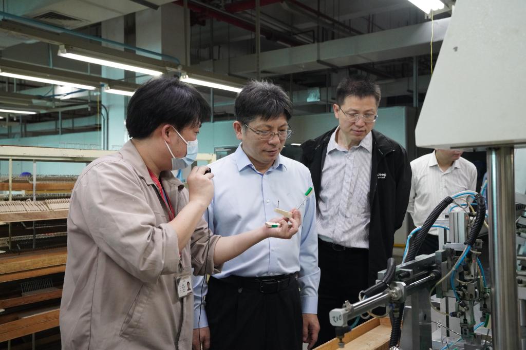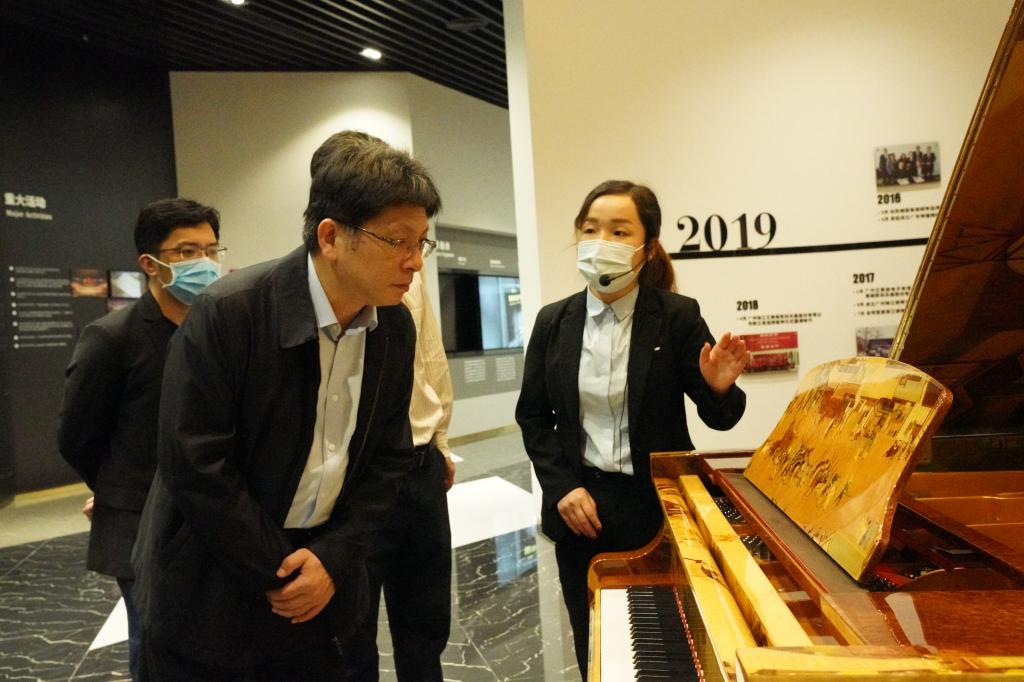 杨景波一行参观了珠江钢琴艺术馆和钢琴生产车间,了解珠江钢琴在钢琴制作、科技创新、产业升级等方面取得的成绩。