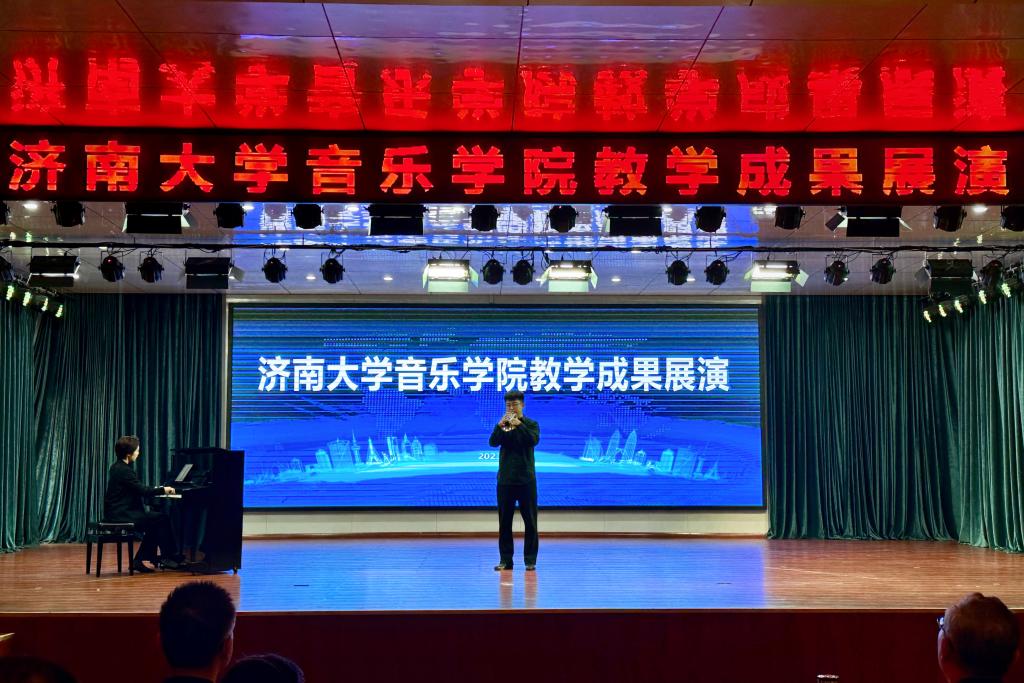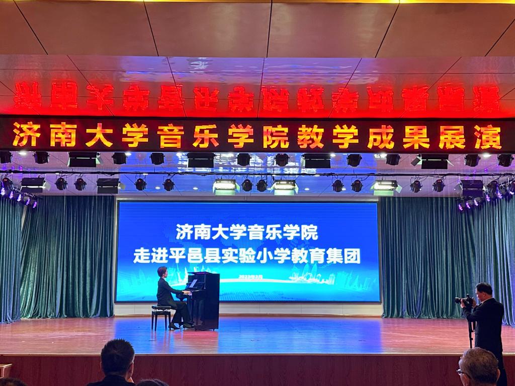 师生在平邑县实验小学进行了教学成果展演。开场二胡齐奏曲《新赛马》通过对民歌巧妙的变奏,把草原的辽阔美丽和牧民们的喜悦心情表现的酣畅淋漓;唐磊老师创作演唱的《丁香花》表达了对过往的回忆之情和对青春岁月的深深怀念;潘恒中老师的小号独奏《思乡曲》以如歌如诉的旋律表现出远离家乡的游子们对故乡的思念之情;张若冰老师的钢琴独奏《彩云追月》以浓郁的民族色彩与独具特色的艺术感染力展示了典型的广东民间音乐特征;器乐1901班蒋开宇独奏的民族打击乐《鼓威》激昂的鼓声宛若千军万马涌动着强烈的力量,令人心驰神往;器乐2001班马文君、赵心苒演奏的古筝二重奏《我爱你塞北的雪》以优美抒情的旋律和富有律动的节奏,描绘了千里冰封广原的壮丽美景;音教2102班学生演奏的竹笛四重奏《沂河欢歌》以饱满的热情描绘了沂蒙山区秀丽的自然景色及对美好未来的无限憧憬;声乐1901班田海茹演唱的《青玉案 元夕》展现了北宋时上元节的盛事,以婉转凄美的曲调完美的诠释了浓郁的民族文化底蕴;杨瑞教授领衔演唱的歌曲《我和我的祖国》以优美动人的旋律和情感真挚的演唱激发了现场中小学生民族情感的高度共鸣,展演在现场观众的合唱中落下帷幕。琴声悠扬、歌声嘹亮,高水准的演出集中展示了午夜av