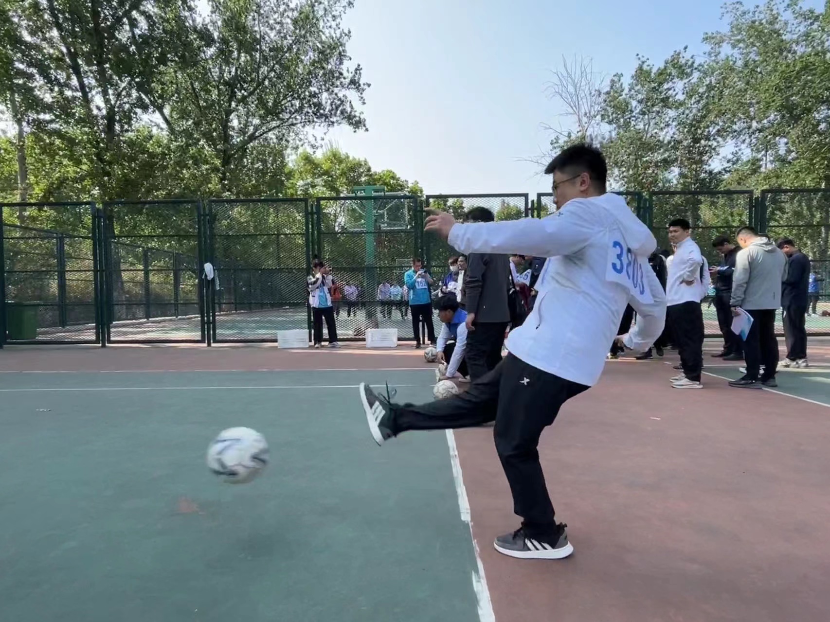 二十余名老师分别参加三个组的足球射门、篮球定点投篮、跳高、标枪、铅球、跳远以及实心球等比赛,在比赛过程中展现了昂扬的体育竞技精神。