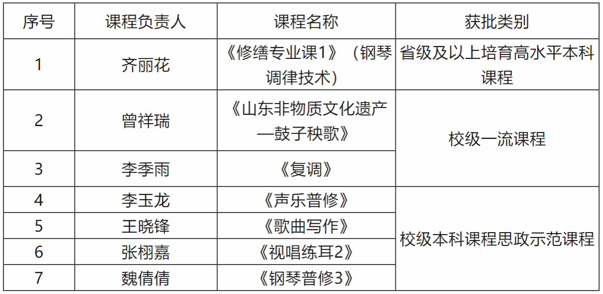 申报的7门课程中,1门确定为省级及以上培育高水平本科课程,2门确定为校级一流课程,4门确定为校级本科课程思政示范课程,获批率为100%。