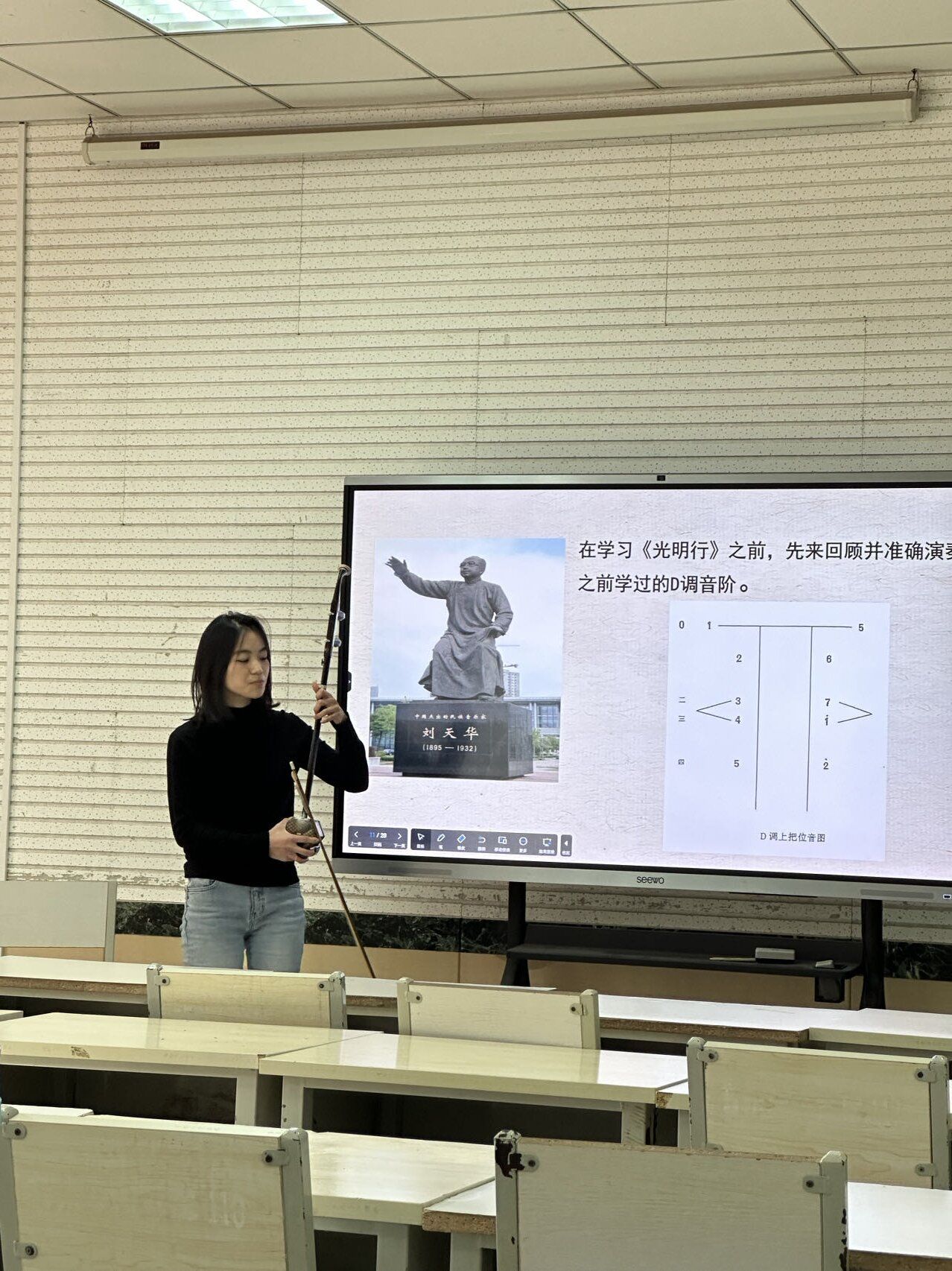 青年教师教学比赛,来自理论系、音教系、器乐系、舞蹈系12位教师参加了此次比赛,部分教师到场进行观摩。