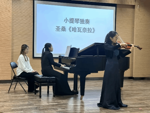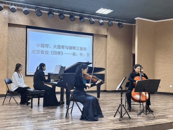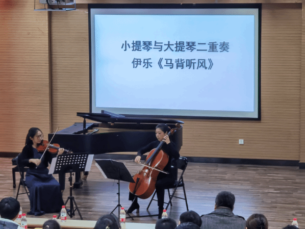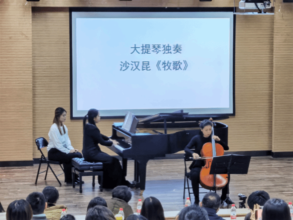 钢琴教师林沛蕾、大提琴教师张晓玫合作交流进行演出。音乐会以“音乐与温度的对话”为主题,有别于以往纯音乐会的形式,通过导赏让观众先对曲目有初步的了解,再进行演奏欣赏,丰富趣味的内容导入与高质量的演出交相辉映,给观众带来不一样的视听感受,对音乐的审美也有了不一样的认识与体验。