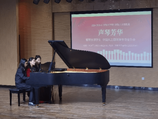 这些原创或改编后的钢琴联弹曲目呈现了原有的民歌或传统音乐的韵味,借钢琴的音色拓展了更多表现力,成为中西合璧的佳作,一场中国传统元素与钢琴艺术完美融合的音乐盛宴。此次音乐会以演代考丰富学生成绩评价的方式,音教系也将继续深耕以美育贯穿人才培养的核心。