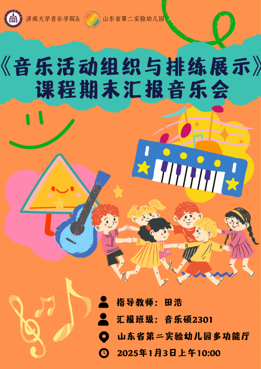 研究生得到更高质量、更有特色的发展,进一步推动协作类课程与开放型实践课程,在本学期开设的《音乐活动组织与排练展示》课程中,田浩老师带领23级研究生走进山东省第二实验幼儿园进行为期一学期的教学实践,并在2025年1月3日联合山东省第二实验幼儿园成功举办课程期末汇报音乐会,午夜av