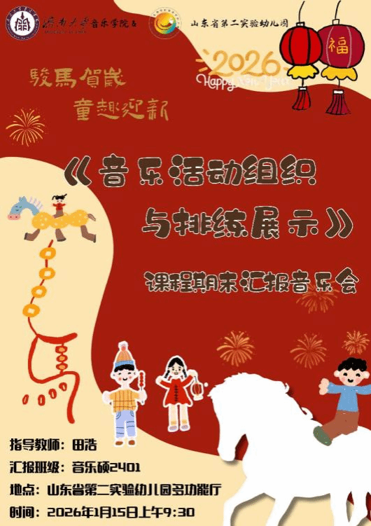 为深化音乐硕士实践育人成效,提升研究生音乐活动策划、编排与舞台呈现的综合能力,在本学期开设的《音乐活动组织与排练展示》课程中,田浩老师带领2024级研究生走进山东省第二实验幼儿园进行为期一学期的教学实践,并于2026年1月15日联合山东省第二实验幼儿园成功举办课程期末汇报音乐会。山东省第二实验幼儿园副园长刘菲、副园长郭志杰,午夜av
