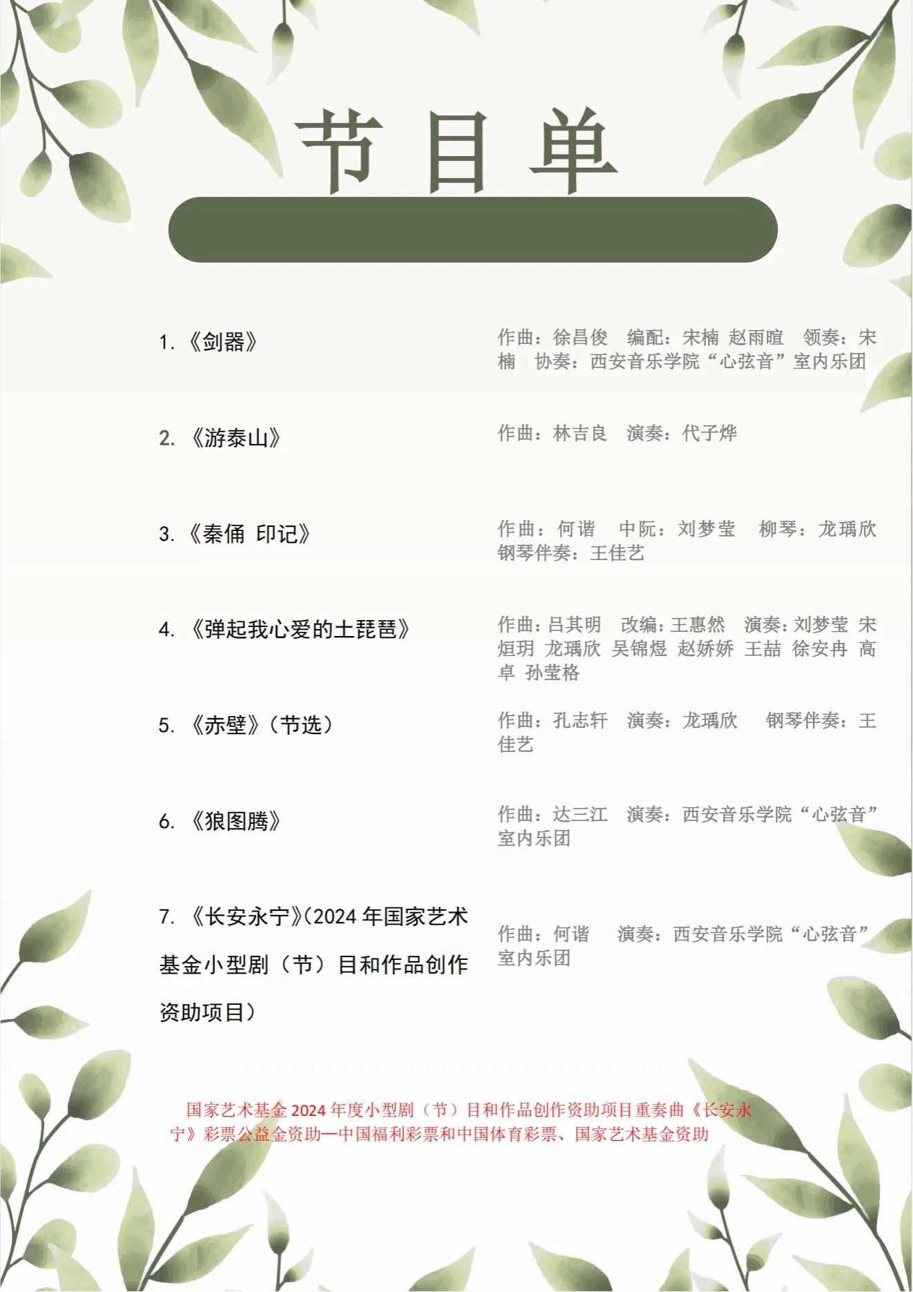 “心弦音”柳琴阮室内乐团国家艺术基金《长安永宁》巡演进校园即将震撼来袭!
