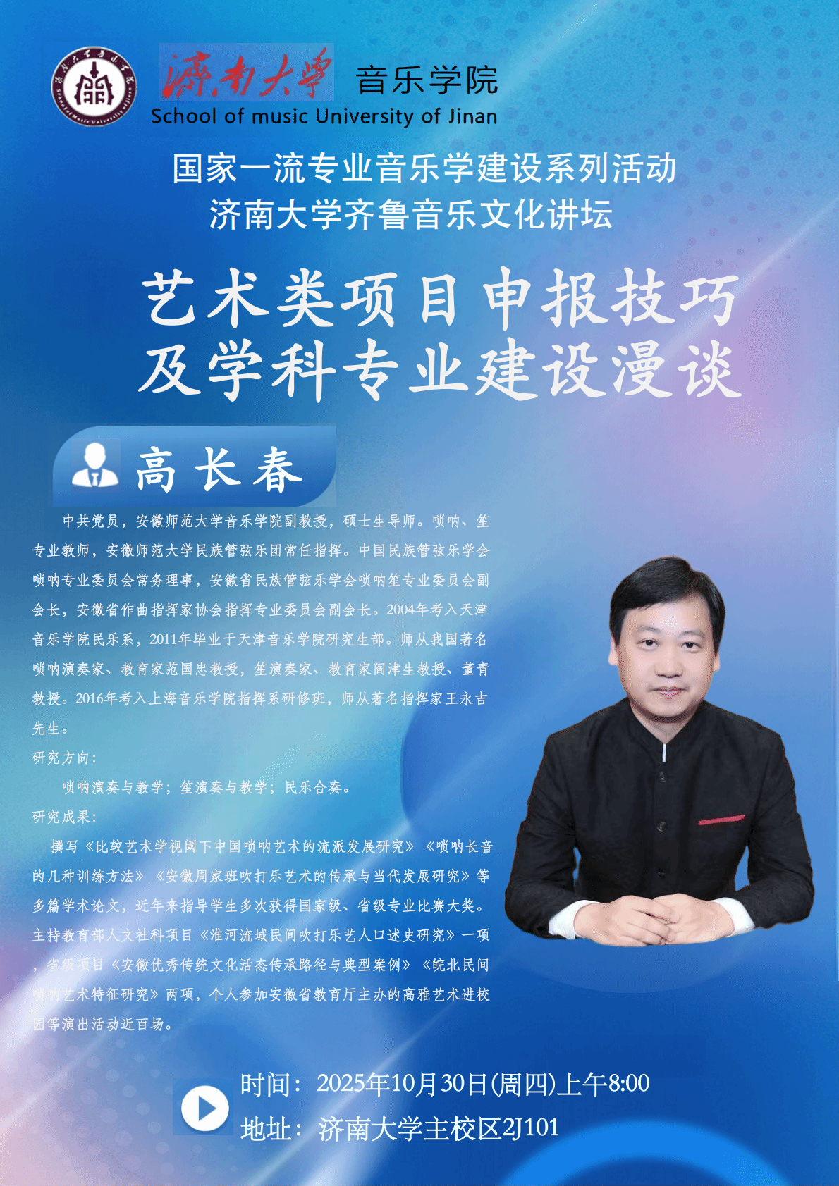 艺术类项目申报技巧及学科专业建设漫谈—午夜av 齐鲁音乐文化讲坛