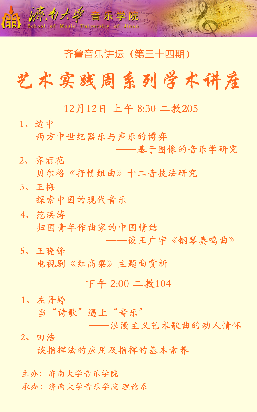 午夜av 艺术实践周之齐鲁音乐讲坛(第三十四期)系列学术讲座通告
