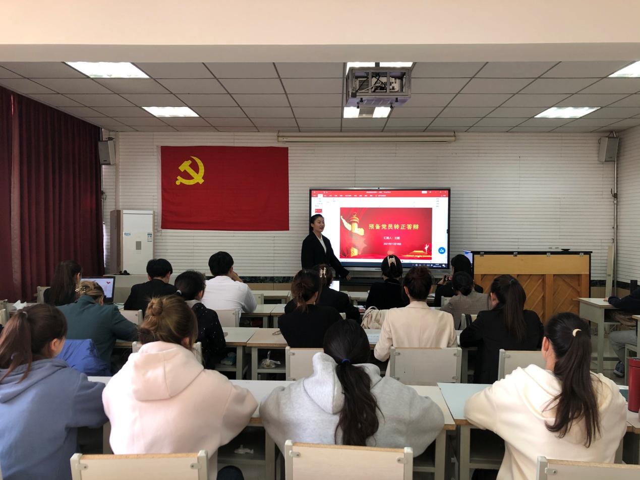 预备党员转正答辩会在第四多媒体教室举行,大会由学生第一党支部书记马媛主持,18名预备期将满的预备党员参加答辩,党支部其他党员和部分积极分子旁听了本次答辩会。