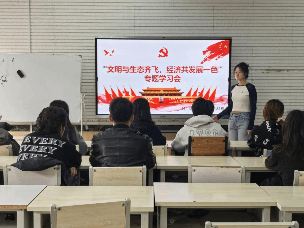 召开“文明与生态齐飞,经济共发展一色”专题学习会,会议由院学生会团学部部长公跃桦主持,学院部分团员与青年干部参会。
