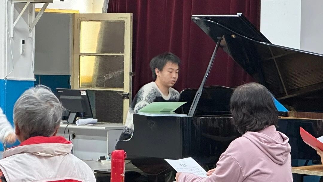学生柏淇舜与李安珂受邀前往校离退休处,为退休教师合唱团担任钢琴伴奏。用悠扬琴声为退休教师们的合唱时光增添温情,既践行了敬老爱老的传统美德,也让学子在实践中传递音乐的温暖力量。