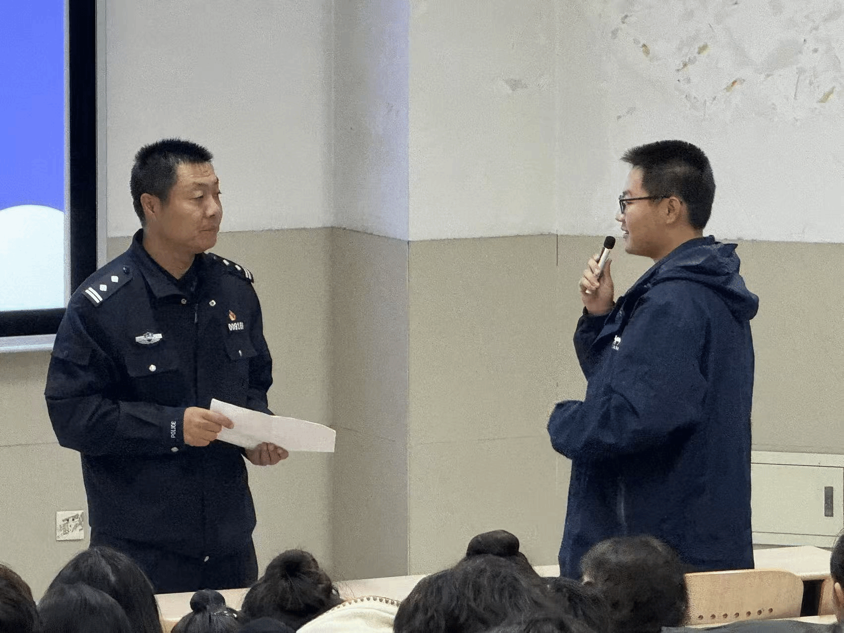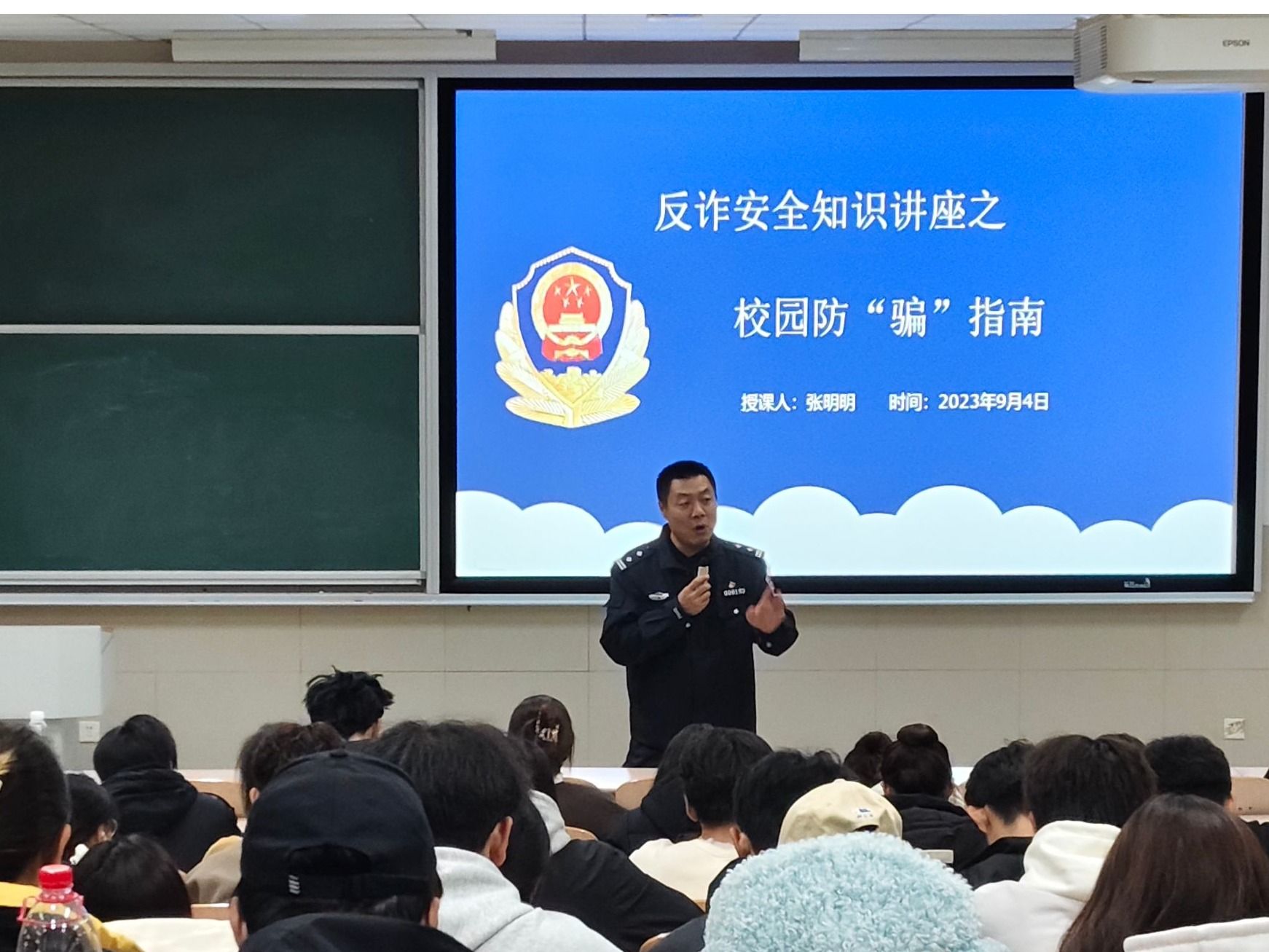 民警张明明同志,开展校园防“骗”主题大学生安全教育讲座。